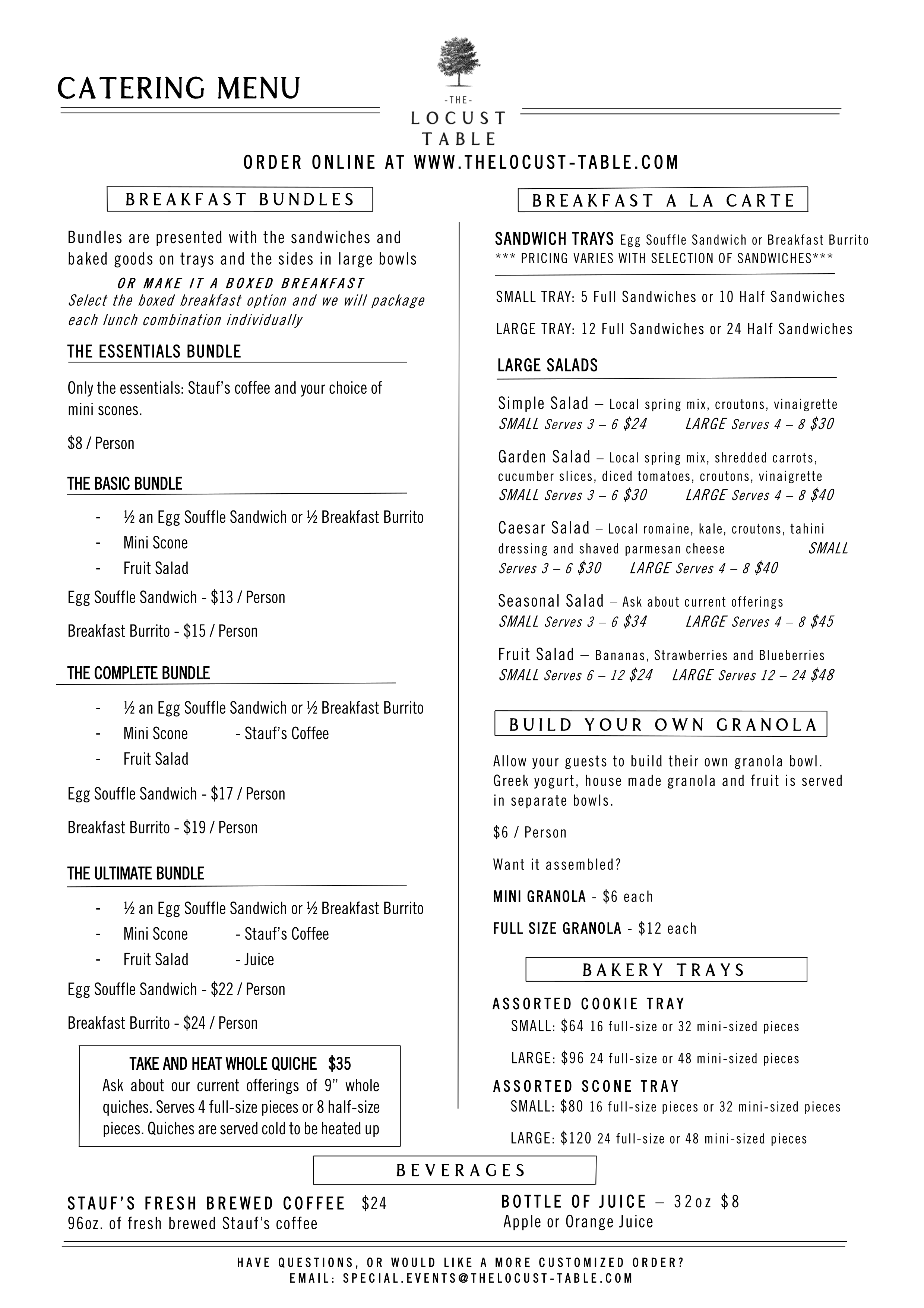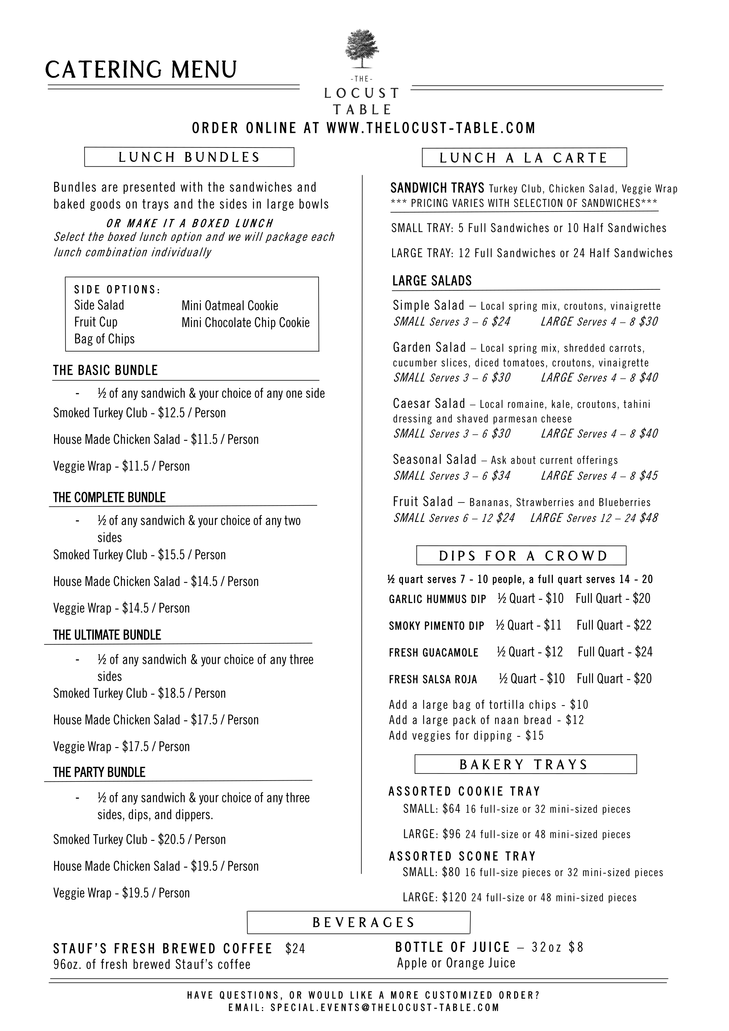 We are so excited to cater your gathering! Please give us a 24 hour notice for catering orders so we can ensure proper prep time. Click the button below, select your day and time for pick up, then scroll to the CATERING MENU to begin.